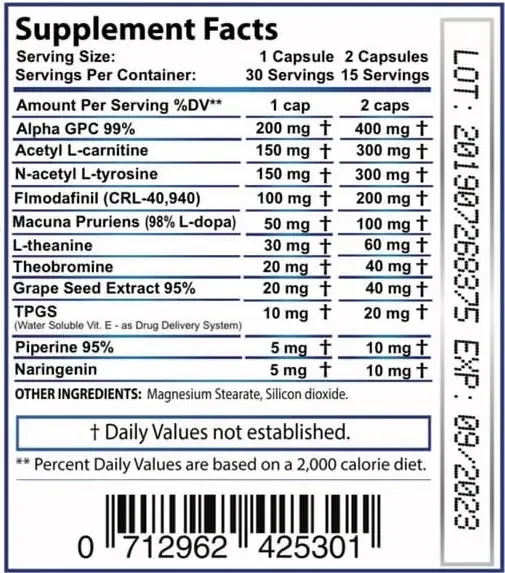 Компоненты состава Core Labs NZT Ultimate Eugeroic King